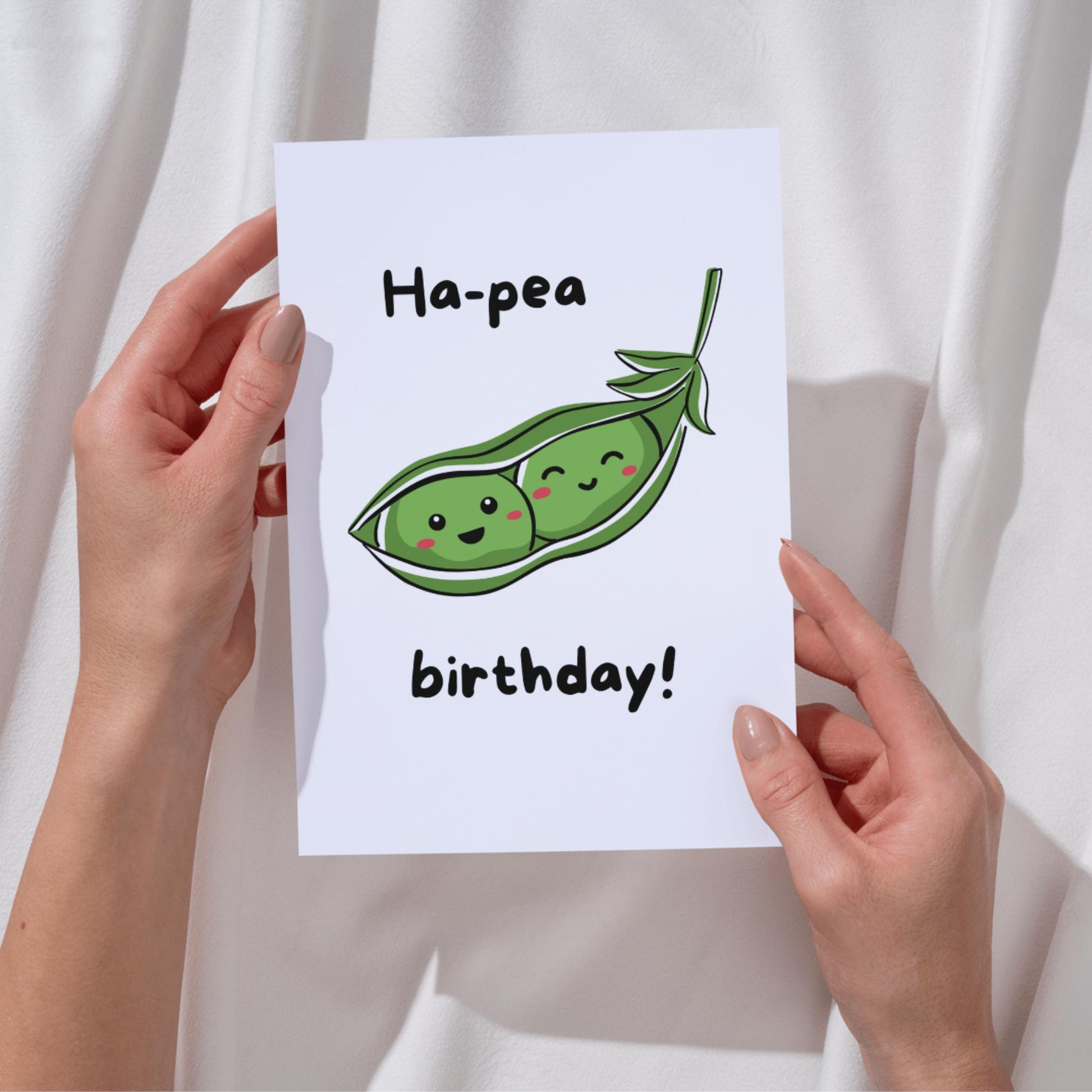 Celebrate with a smile using our Funny Birthday Card featuring the adorable “Ha‑pea Birthday!” design. This cheerful greeting card combines cute kawaii-style pea pod illustration with playful pun wordplay, making it the perfect choice for kids, friends, partners, or anyone who loves whimsical, lighthearted birthday wishes. The bright, friendly colors and charming characters are sure to bring joy and laughter to any celebration.