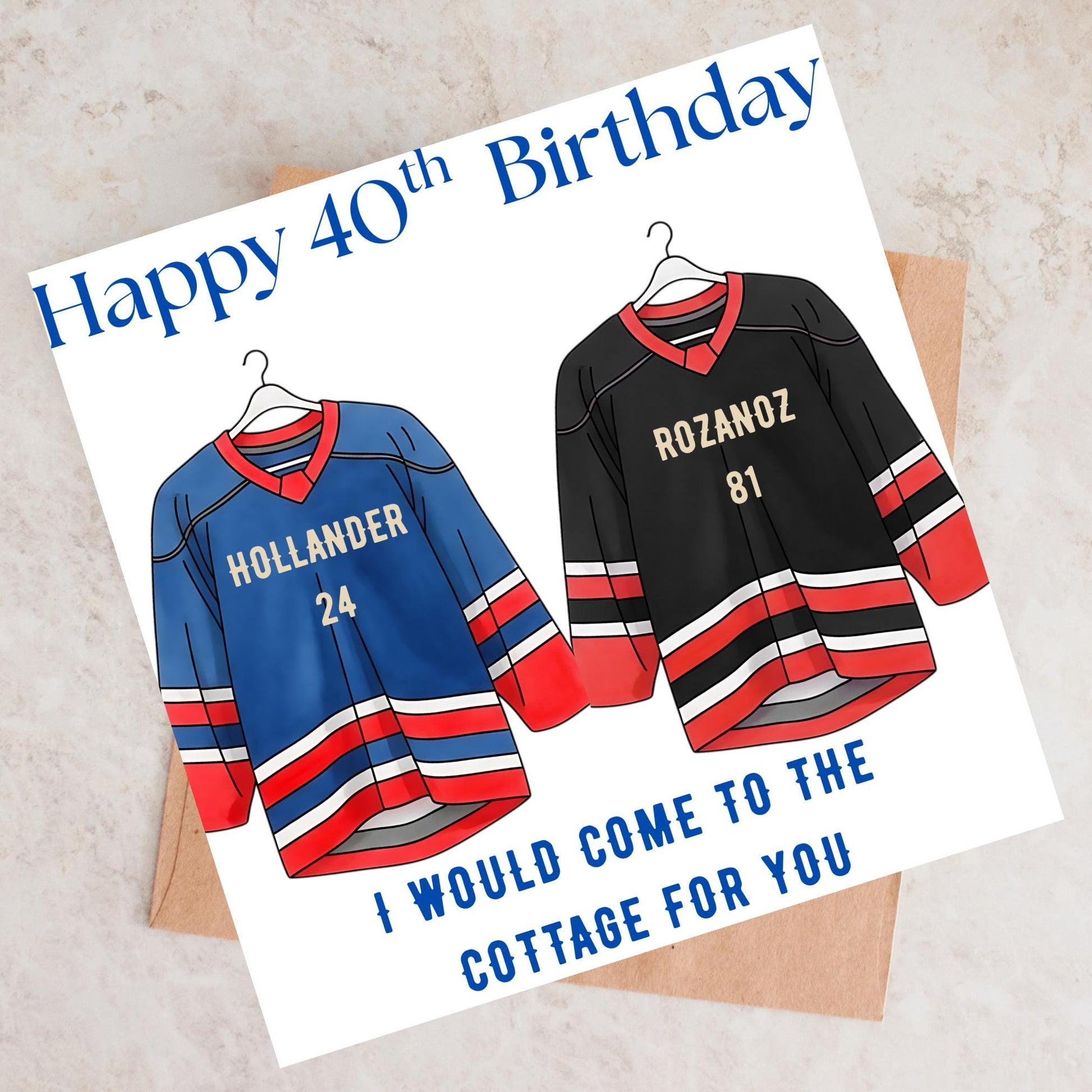 Tags: unique birthday card, hockey lover gift, sports fan card, hockey jersey card, custom sports card, 40th birthday card, funny hockey card, personalized name card, hockey gift idea, birthday for him, custom hockey card