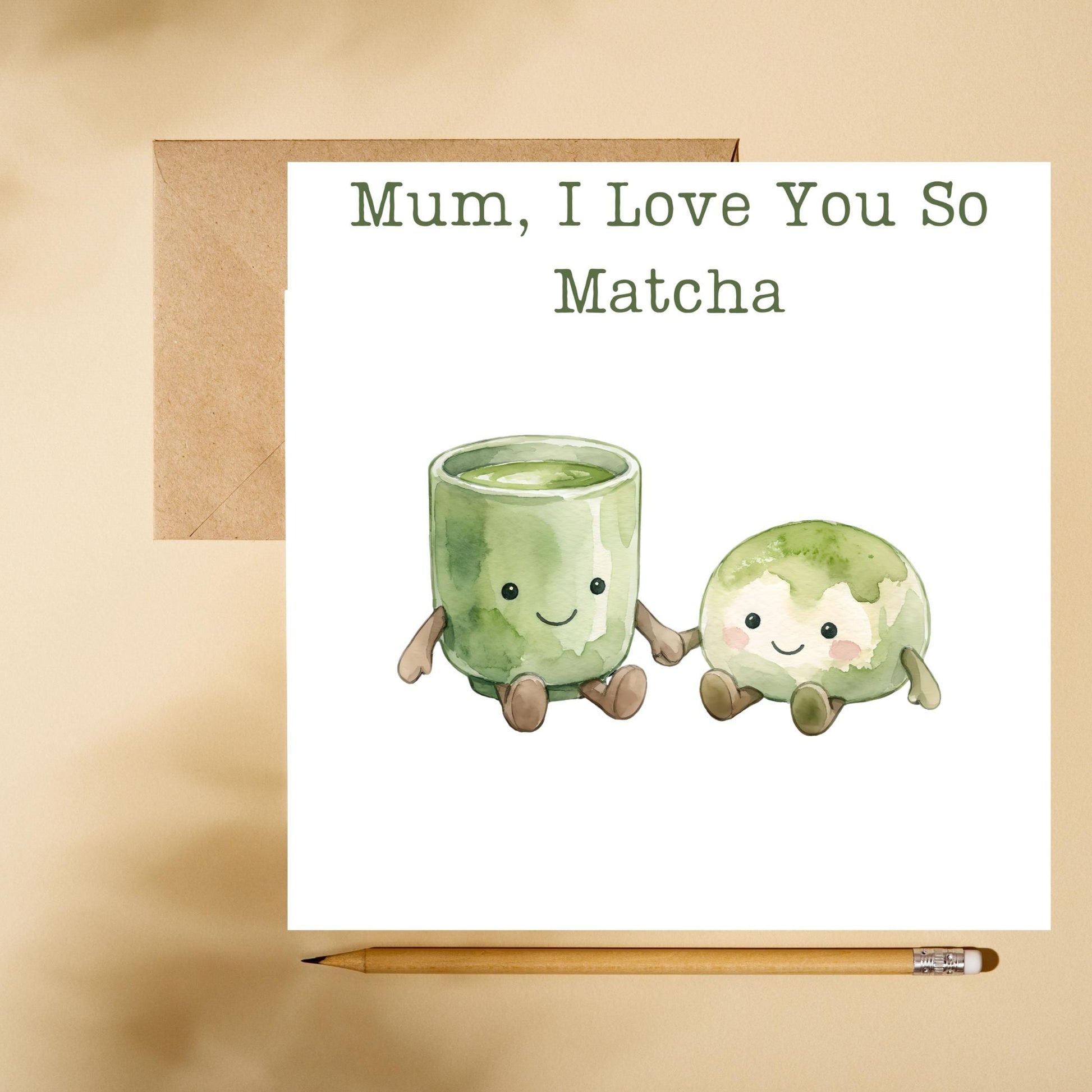 Made from high-quality, eco-friendly cardstock, this greeting card is both durable and environmentally conscious. Its bright, cheerful design makes it an ideal gift for moms, friends, or anyone passionate about matcha. Whether you're expressing your love or celebrating a special milestone, this card offers a heartfelt message with a delightful twist.