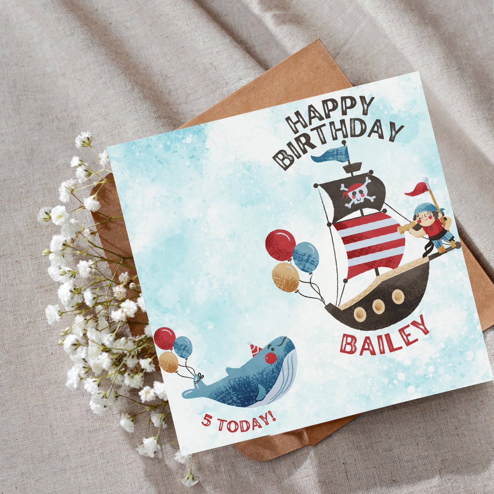 Set sail with our delightful Pirate Name Card, perfect for birthdays, parties, or special messages for young adventurers! Featuring a charming pirate ship and playful whale illustration, this card captures the spirit of adventure and fun. Crafted with attention to detail, it’s an ideal way to add a personalized touch to any celebration or occasion.